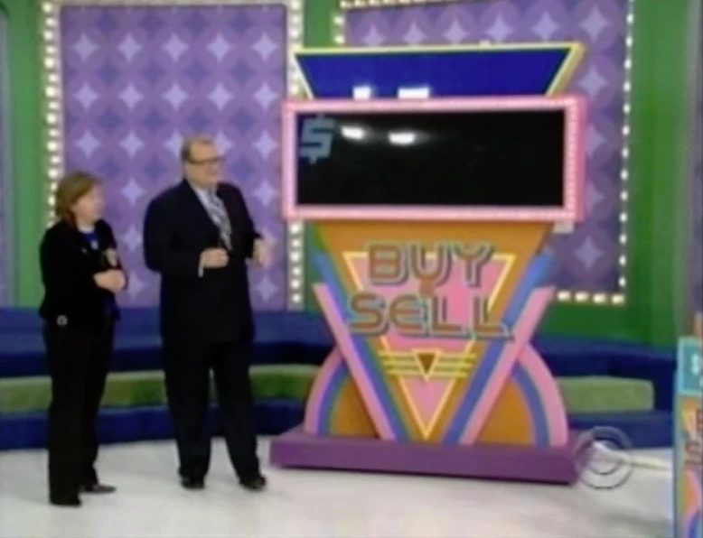 - Buy or Sell's tote board was staged in several different locations over the course of its first few playings. On November 30, 1998 (#0921K), the digital readout on the board was changed from pink neon lights on a blue background (similar to Super Password displaying the jackpot amount for the bonus round) to greenish-blue LCD digits displayed on a black background, as the original tote board was hard to read. In the first few times this game was played, the purple base of the Buy or Sell tote board was much taller than it was later on.