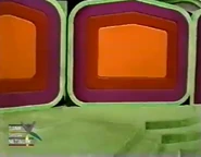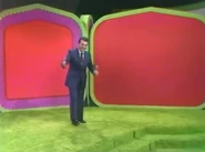 The prizes and the pricing games were displayed on a turntable with a wall on it. Behind the wall is a chase light wall. On the side of the light wall is a small opening covered by a curtain, so that the games and prizes would come in through easily.