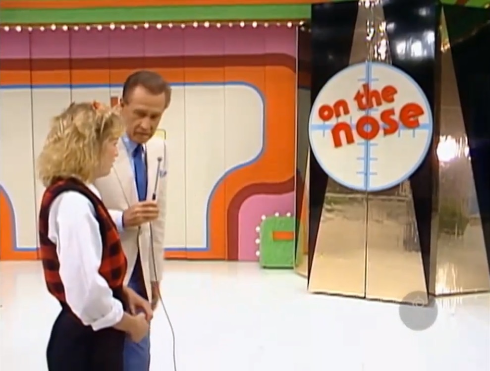 On the Nose was a pricing game where the contestant had to perform a sporting feat to win. It was played for a car and a potential cash bonus of $1,000.