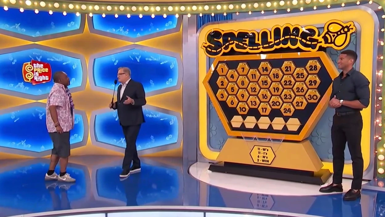 Spelling Bee is where contestants try to spell the word "CAR" using honeycomb-shaped cards to win a car; they can also win a consolation cash prize of $5,000.