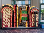 - When the curtain opens to reveal the Big Wheel, the 2003 Plinko harp stinger plays. The ending music cue is the same version of "Dig We Must" that plays when someone wins money on the Big Wheel, somewhat closely resembling what the TV version once did from 1976 to 1988, and resumed in 2009.